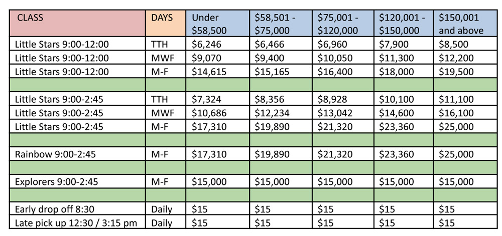 Tuition for the 2026-2027 school year is based on